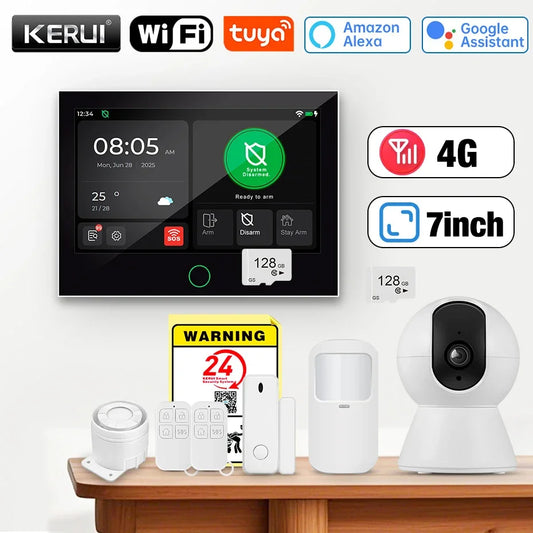 KERUI G70 4G Alarm Security System 7-inch Large IPS Touch Screen Home Alarm for House Security Protection Alexa Tuya Smart APP