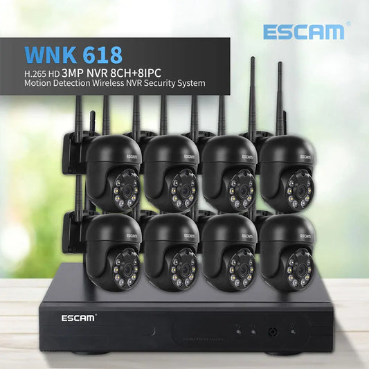 ESCAM 3MP 8CH Wireless Camera Security System Set 3MP Wifi NVR Kit Way Audio Outdoor Wifi Video Surveillance Camera System Kit