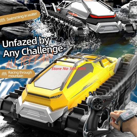 2.4G Amphibious Tank Car Climbing Off Road Water Land All Terrain Tracked Watch Remote Dual Control Tank Car Toy Gift Kid boys