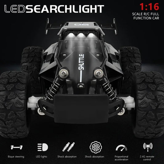 RC Alloy Car 1:16 Scale 2WD Off-Road Climbing Remote Control Car With LED Light 20KM/H High Speed Toys Gifts For Boys Girls Kids