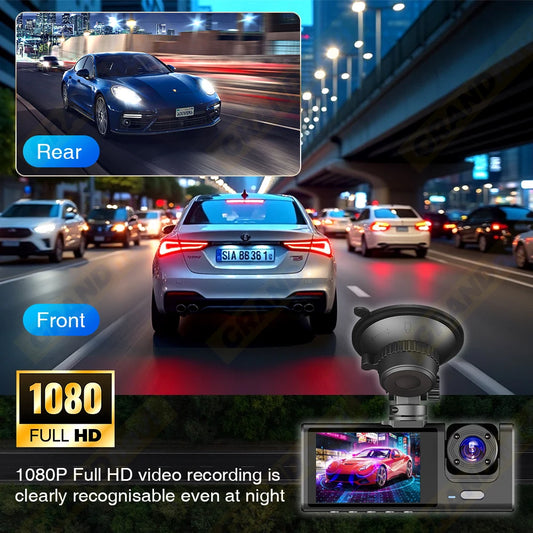 Dash Cam for Cars 3 Channel Car DVR 1080P Camera Video Recorder Front and Rear Inside View Camera for Vehicle Three Way Dashcam