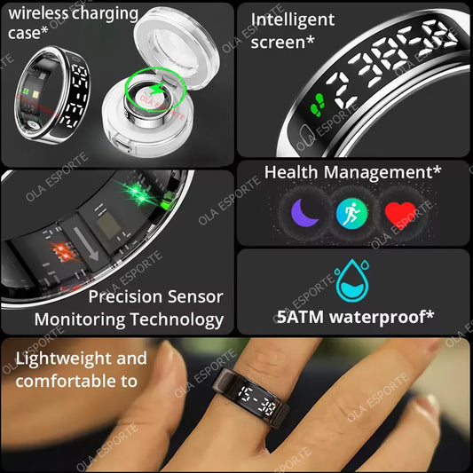 Smart Ring Men Women LED Display Screen Heart Rate Health Monitor Waterproof Sport Modes rings Scroll through tiktok