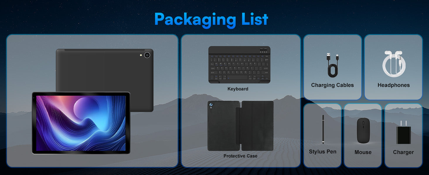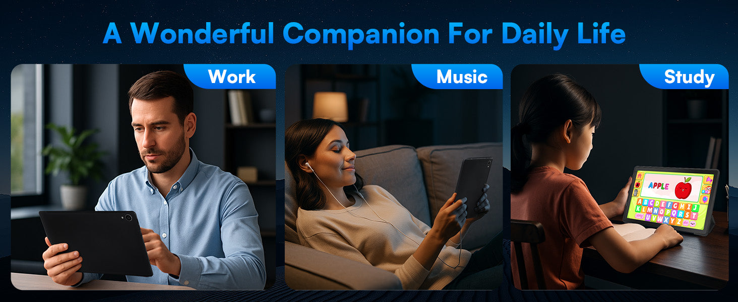 🔊 【Dual 1W Speakers + Dual Mics】The electronics tablets are equipped with dual speakers and dual mics, this smart tablet transforms video calls and movie nights. The speakers deliver rich, immersive sound, while the mics ensure your voice comes through crystal-clear. It's like having a personal sound engineer for every call. Entertainment on the go—stream, browse, and play. Its lightweight design (approx 450g) ensures maximum portability. Combining convenience, powerful functionality, and modern style, this versatile kit makes the ideal gift for coworkers, friends, family, and business professionals.
