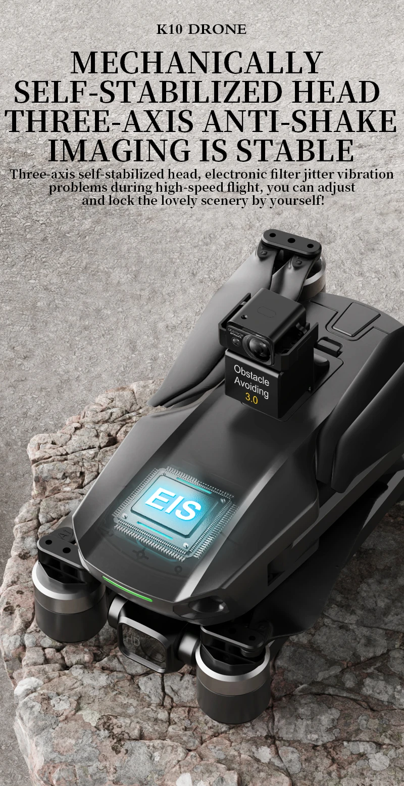 Three axis mechanical stabilization gimbal+electronic stabilization and anti shake+laser obstacle avoidance
