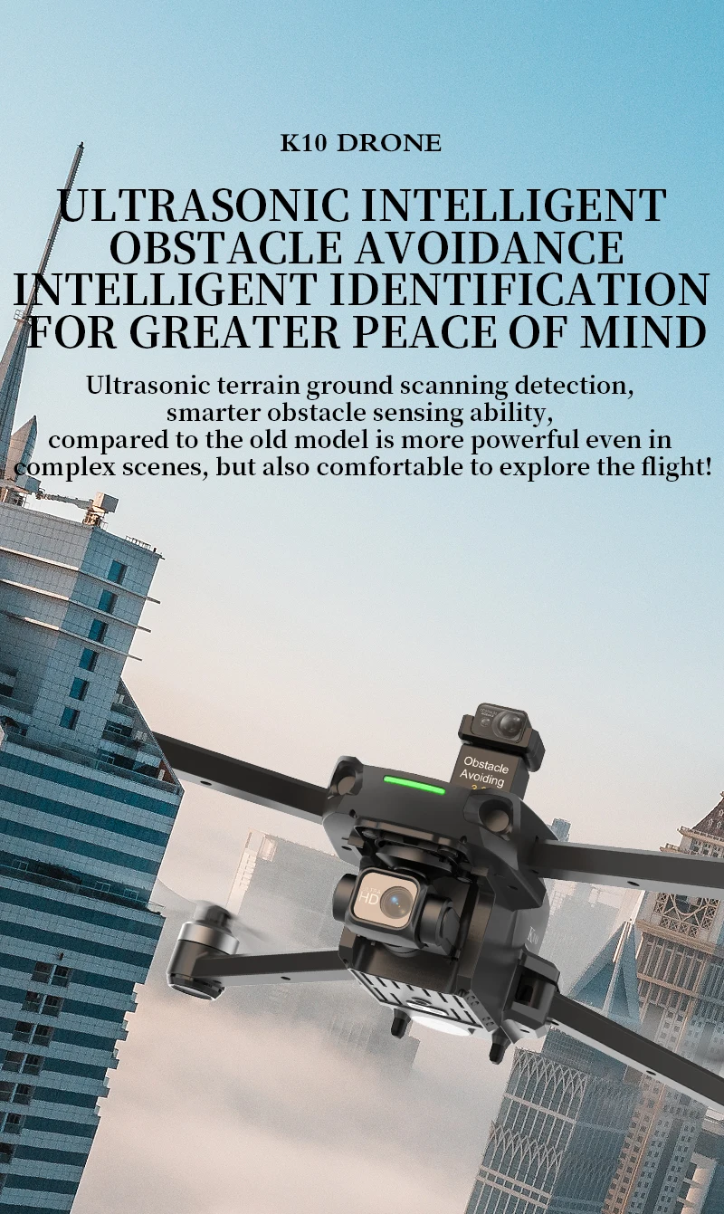 8. 4K adjustable camera (three-axis mechanical stabilization pan tilt+electronic stabilization anti shake+laser obstacle avoidance)