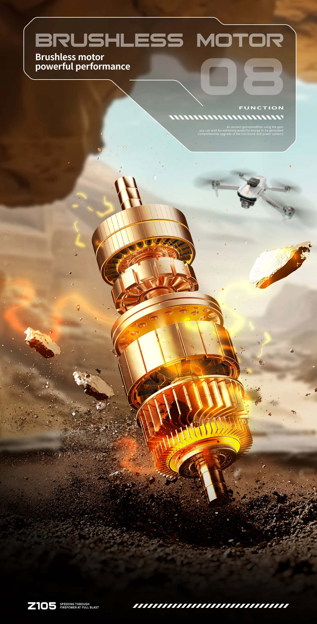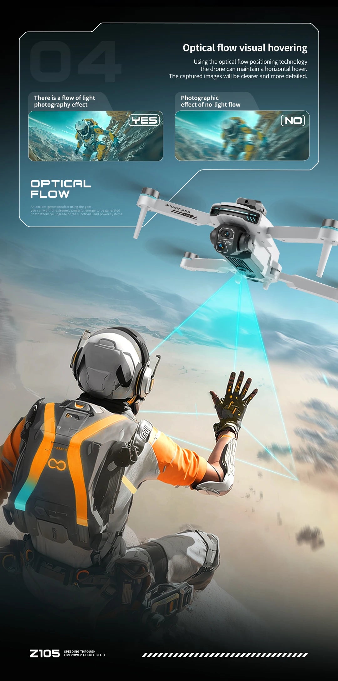 Main functions: Z105 4.3-inch large screen remote control brushless drone with dual lens WIFI professional aerial photography machine small size with anti-shake gimbal