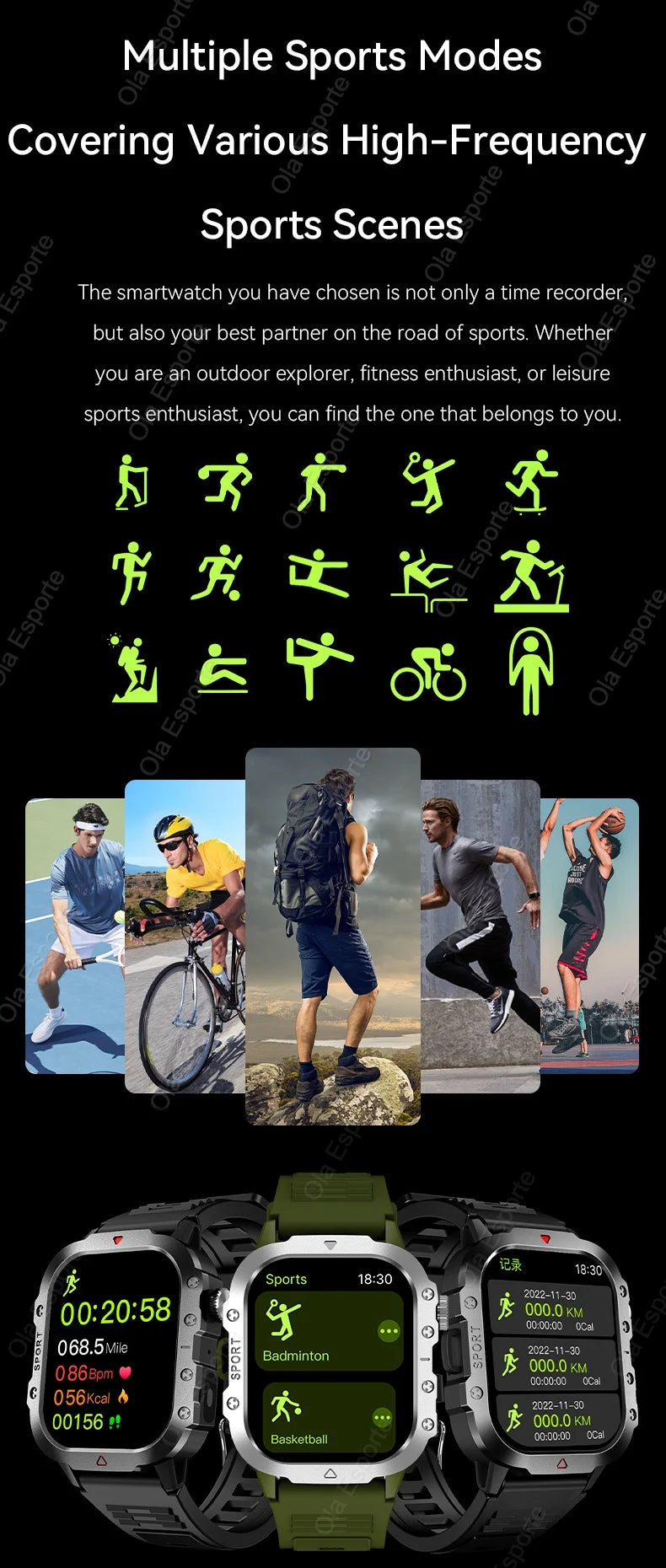 2025 New Military Smart Watch Men Outdoor 2.01" Al Voice Bluetooth Call Smartwatch Surprise Gift Outdoors For Android & IOS Male