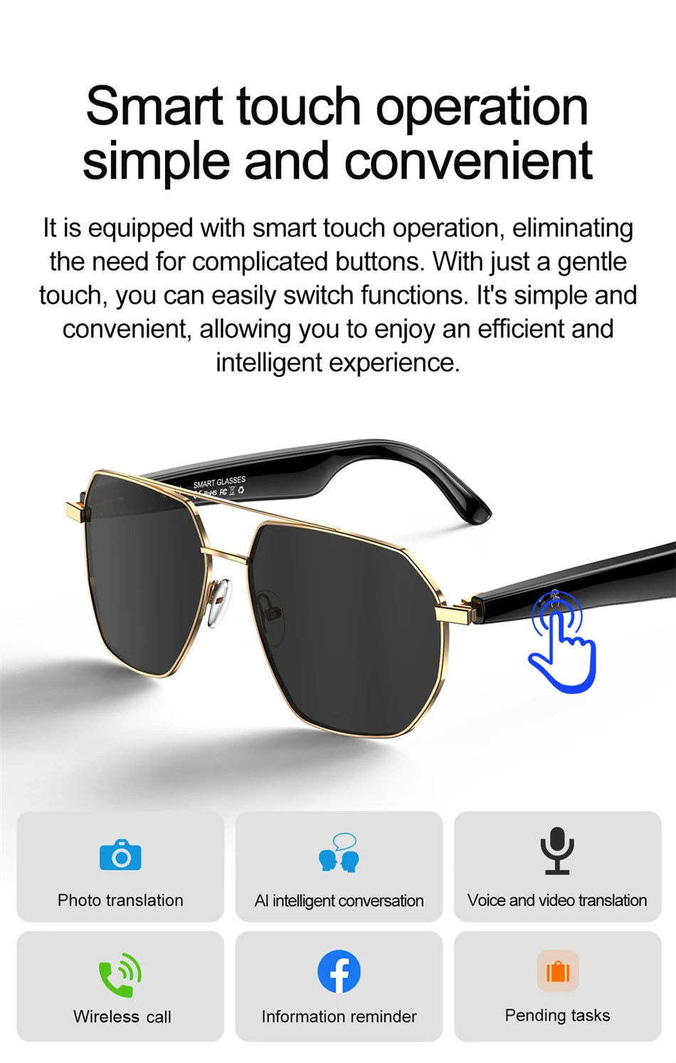 2025 New Smart Glasses Multiple Language Real-time Translation Wireless Call Music Play Sunglasses Waterproof Mens Smart Glasses