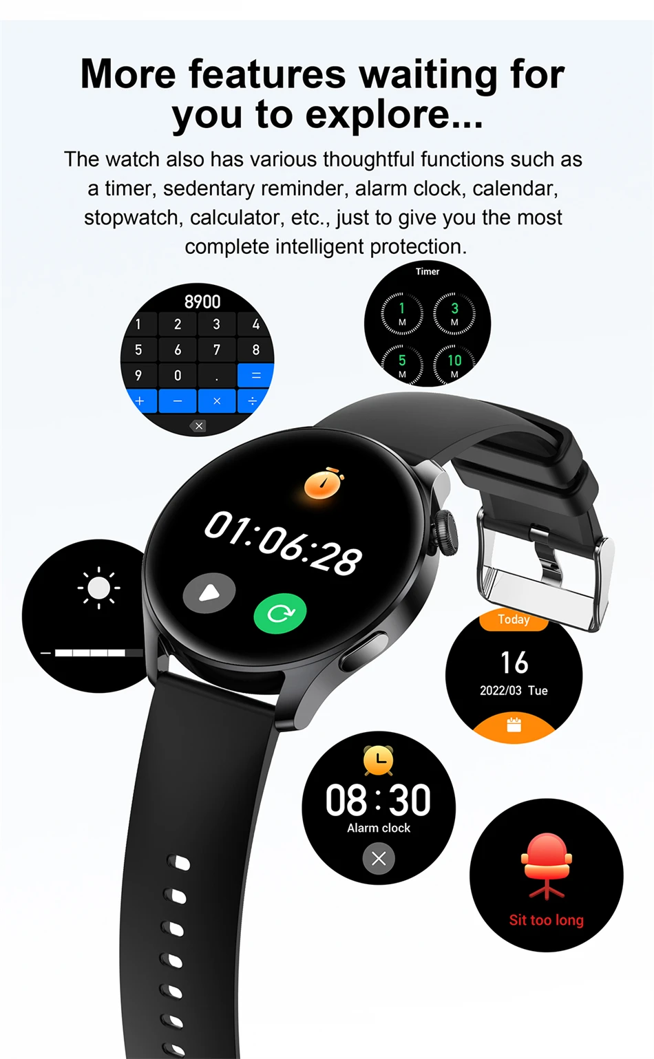 Function: Shock Resistant,Passometer,fitness tracker,sleep tracker,Message Reminder,Call Reminder,Answer Call,Dial Call,REMOTE CONTROL,Push Message,24 hour instruction,Chronograph,Alarm Clock,World Time,Calorie Counter,Permanent Calendar,Multiple Time Zone,Power Reserve,Phase of the Moon,Month,Heart Rate Tracker,Interactive Music,Noctilucent,Calendar,Compass,Countdown,Calculators