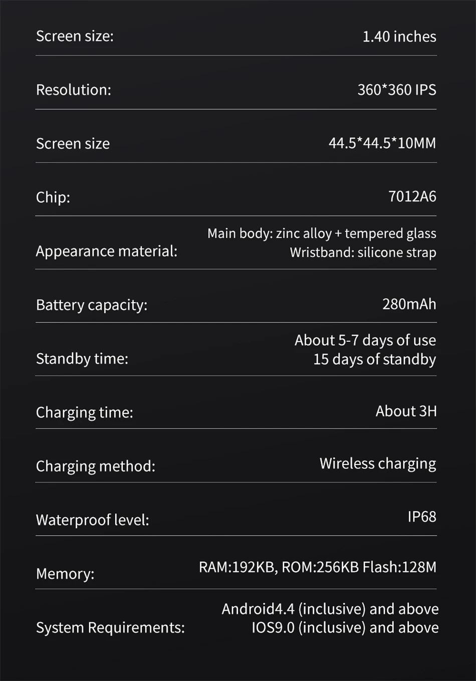 System: Android Wear,Proprietary OS,Android OS,iOS,None,Wear OS,Color OS,HarmonyOS,FreeRTOS,Wacth OS,Zepp OS,DuWear,Tizen OS