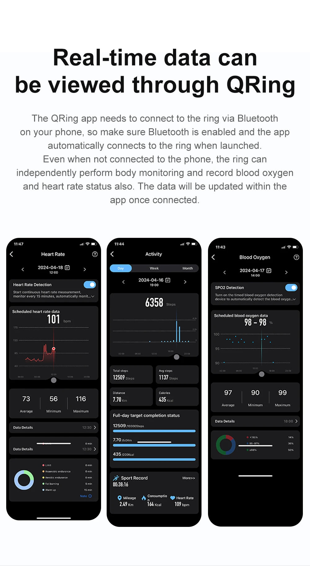 3. How to start: Charge the Ring with the included charging cable. The heart rate light will light up to indicate successful startup. Then you can use the APP Qring to connect the Ring.