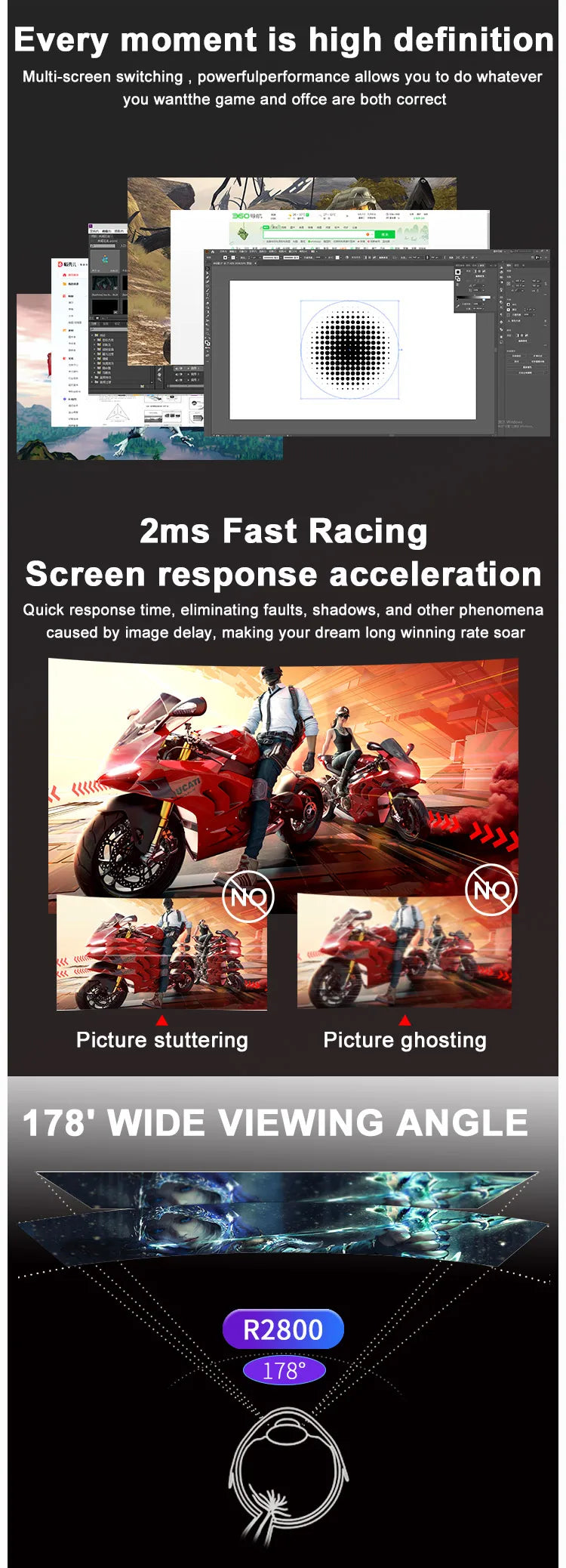 24-inch Gaming Monitor,1920*1080p,2ms,144hz,Ultra Wide 178° Wide Viewing Angle,LED Curved Display,For Gaming Office Learning