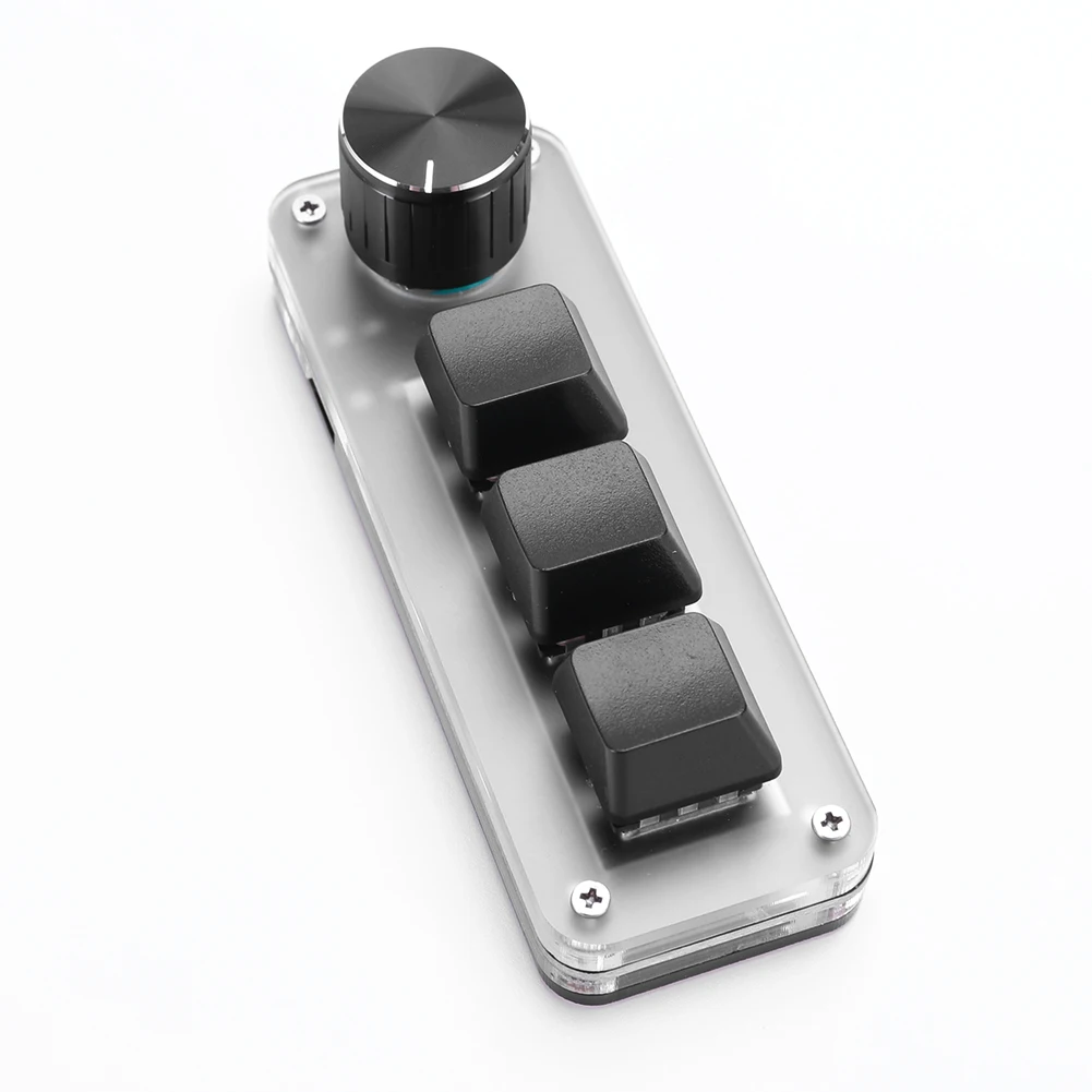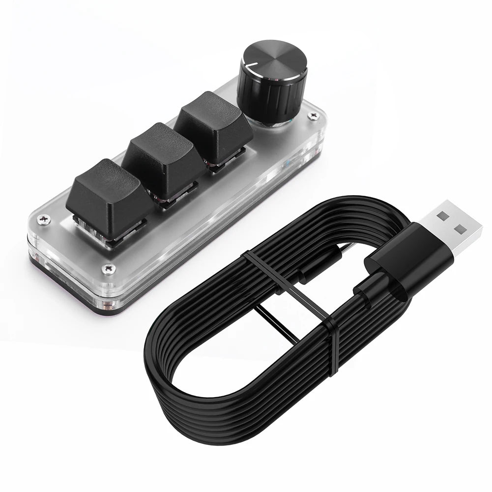 3 keys and 1 knobs are programmable: 3 keys, the knob is pressed, clockwise rotation, counterclockwise rotation can be customized. RGB LED colorful lighting mode can also be set to change different lighting effects.