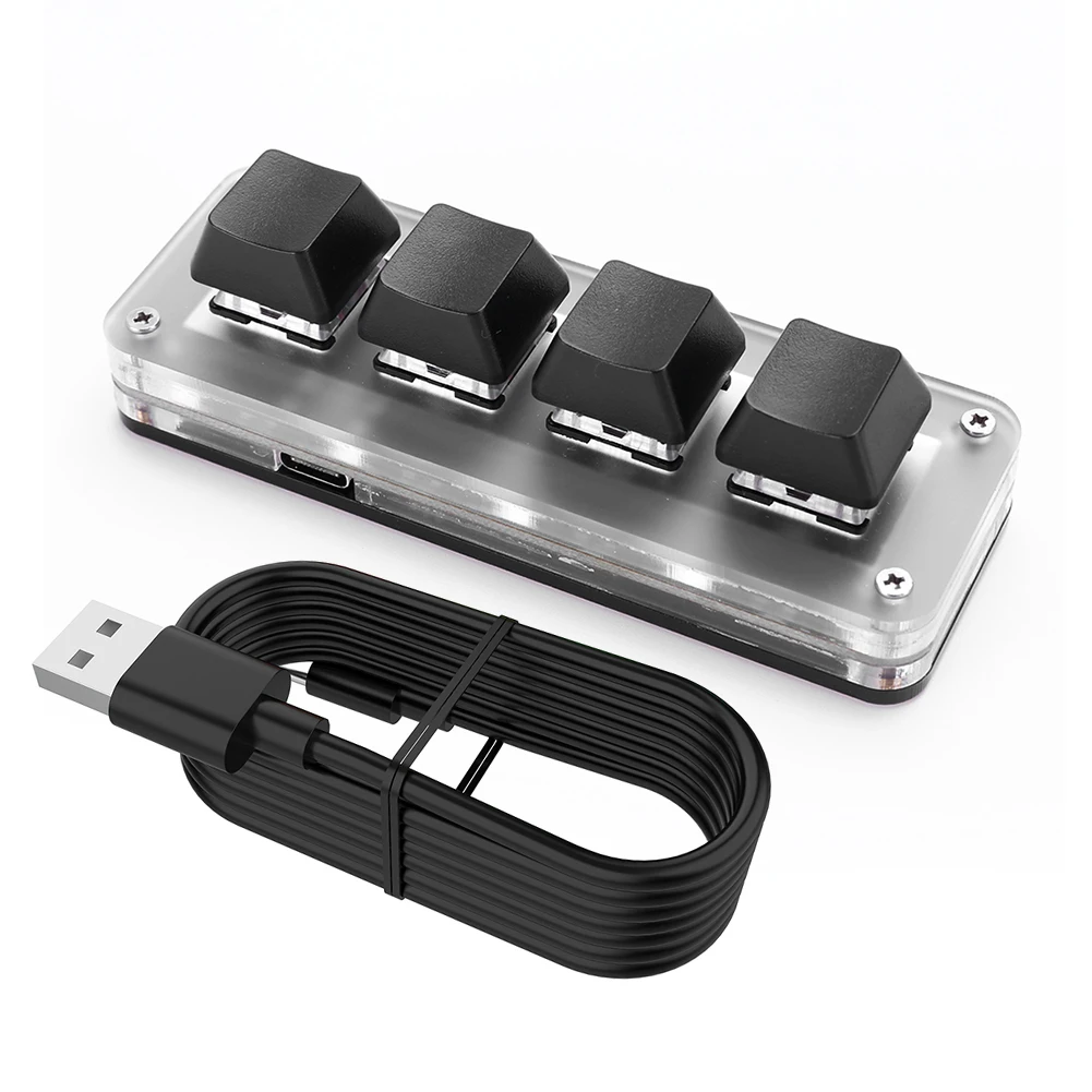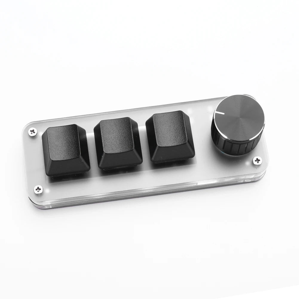 Knob function: The knob can set functions such as zoom in and zoom out, previous track, next track, volume up, volume down, pause, play, etc. The one-handed macro mechanical keyboard is easy to operate and easy to carry. (Note: The 4-key keyboard has no volume knob)