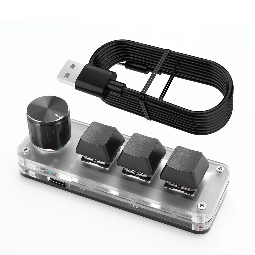 3 Key 1 Knob/4 Key Mini Mechanical BT Keyboard RGB Wired USB Mechanical Macropad Red Switches for Gamers/Designers/Video Editor
