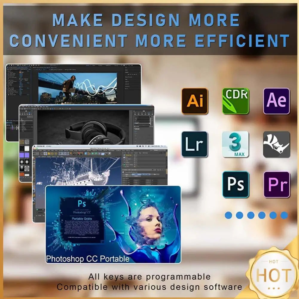 3. Mechanical Keys: The photoshop gaming keypad offers steadfast durability with mechanical key switches designed for long-lasting and consistent performance, turning every press into perfection-ideal for graphic design enthusiasts, gamers, and professionals who require a reliable, tactile response for their craft.