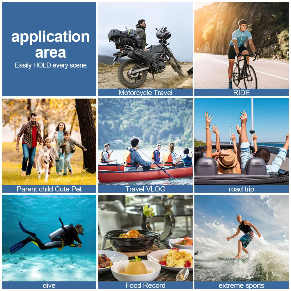 5. LIGHTWEIGHT AND PORTABLE: this is a very compact sports camera that you can carry with you anywhere. With different accessories, suitable for different situations. Easy to record, great for mountain biking, pets, traveling, any activity!