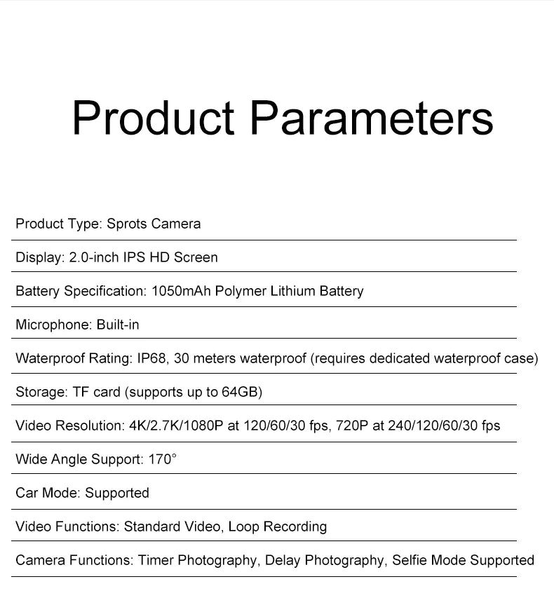 4K Action Camera 1080P 30FPS 170° Wide Angle Lens Outdoor Diving And Riding Sports Camera Ultra HD Pixels Sports Camera