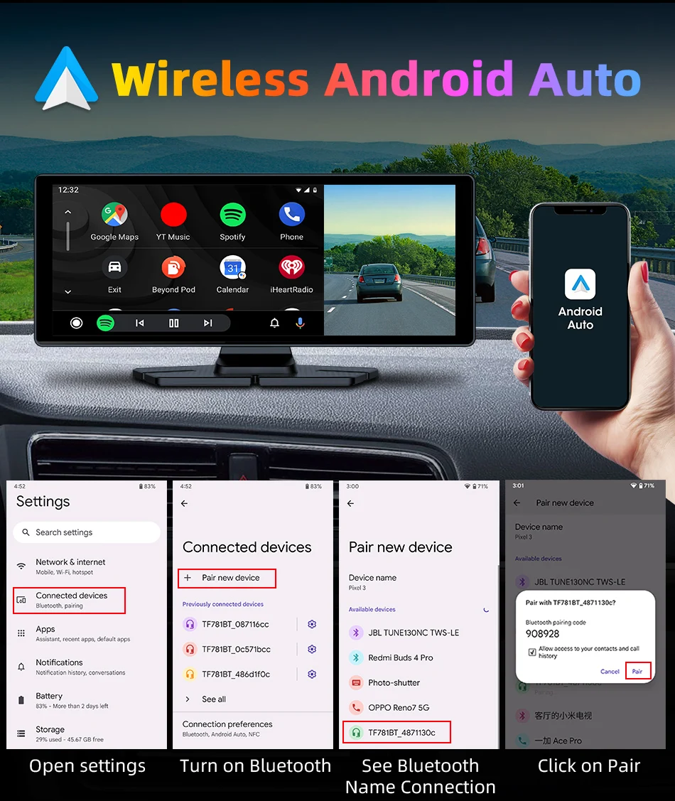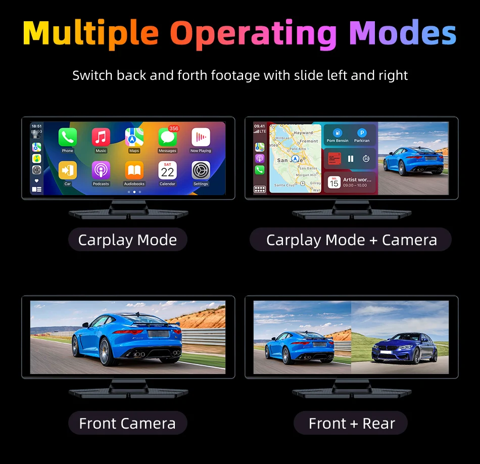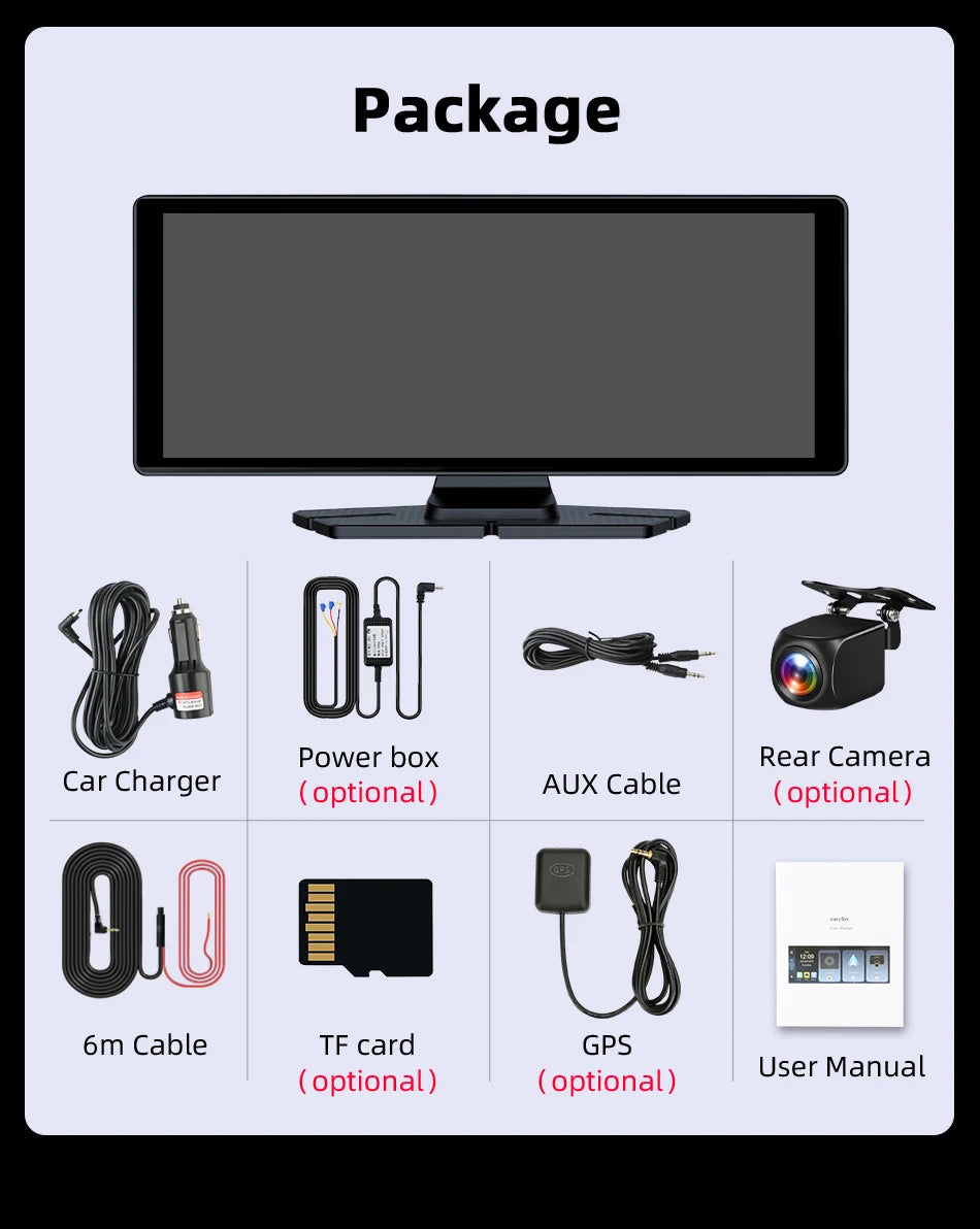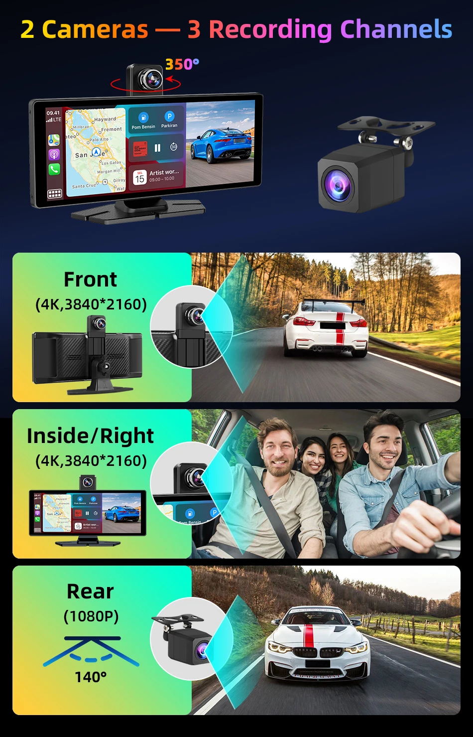 4K Dash Cam 10.26 inch Carplay & Android Auto Car DVR Video Recorder Dahscam Camera 5G Wifi GPS Navigation FM AUX 360 ° Rotation