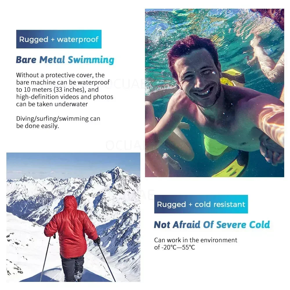 Without a protective cover, the bare machine can be waterproof to 10 meters(33 inches), and high-definition videos and photos can be taken underwater