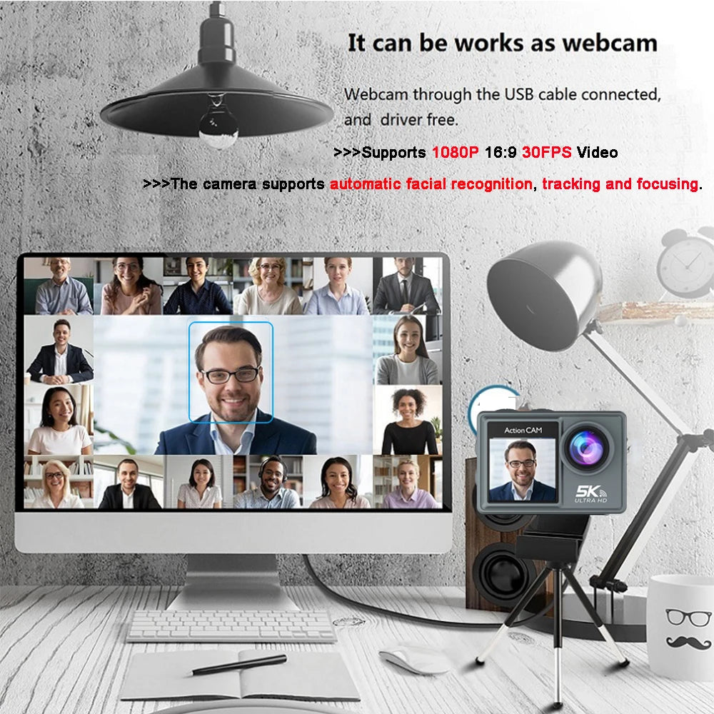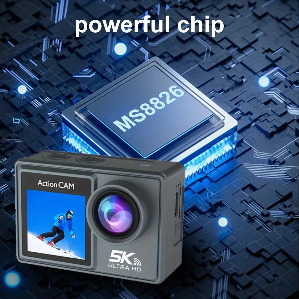 5K 4K60FPS Action Camera Dual IPS Touch LCD DVR EIS 170° 30M Waterproof 5X Zoom Sport Camera With Wireless Mic&Remote Control