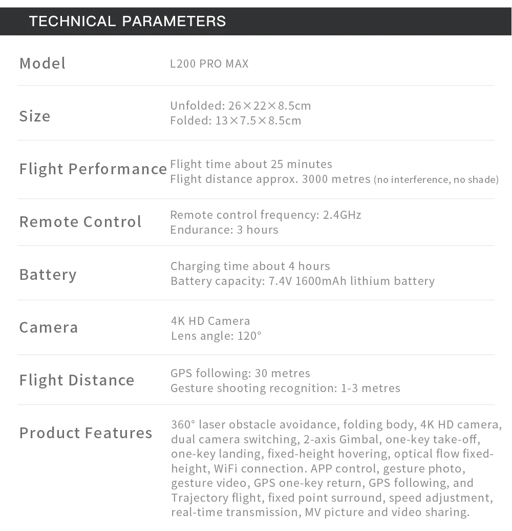 1 x L200 PRO MAX Drone with or without obstacle avoidance device (optional)