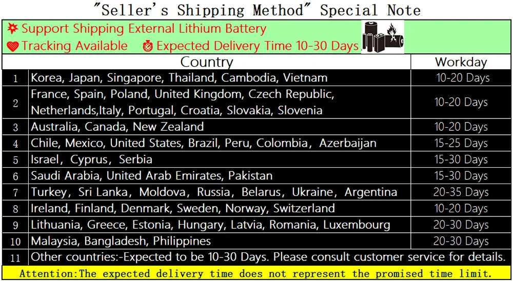 ■Options 7, 8, 9,10,11,12: "Additional lithium batteries" are Class 9 aviation contraband and must be shipped separately to certain countries via the "“Seller's Shipping Method”".