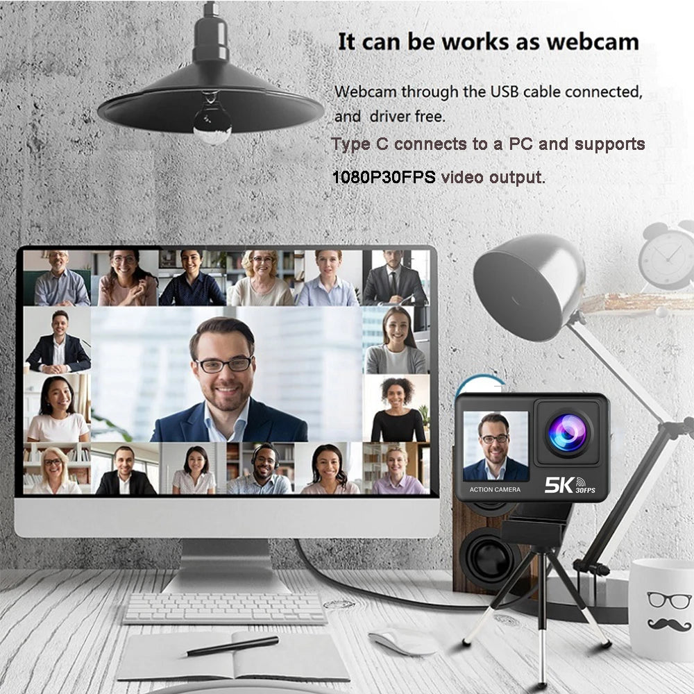 Action Camera 5K 4K60FPS 50MP 2.0 Touch EIS Pre-Record Wireless Mic Wi-Fi 170D DVR Webcam Waterproof 30M 5X Zoom Sports Camera