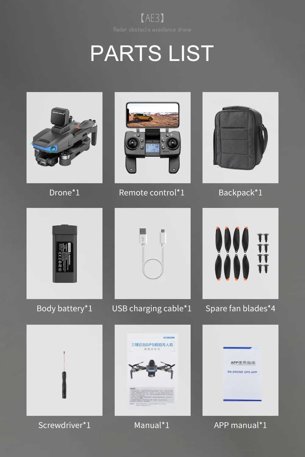 AE3 MAX Drone GPS 4K Camera 3-Axis Gimbal Anti-shake Aerial Photography Brushless Foldable Quadcopter thermal drone