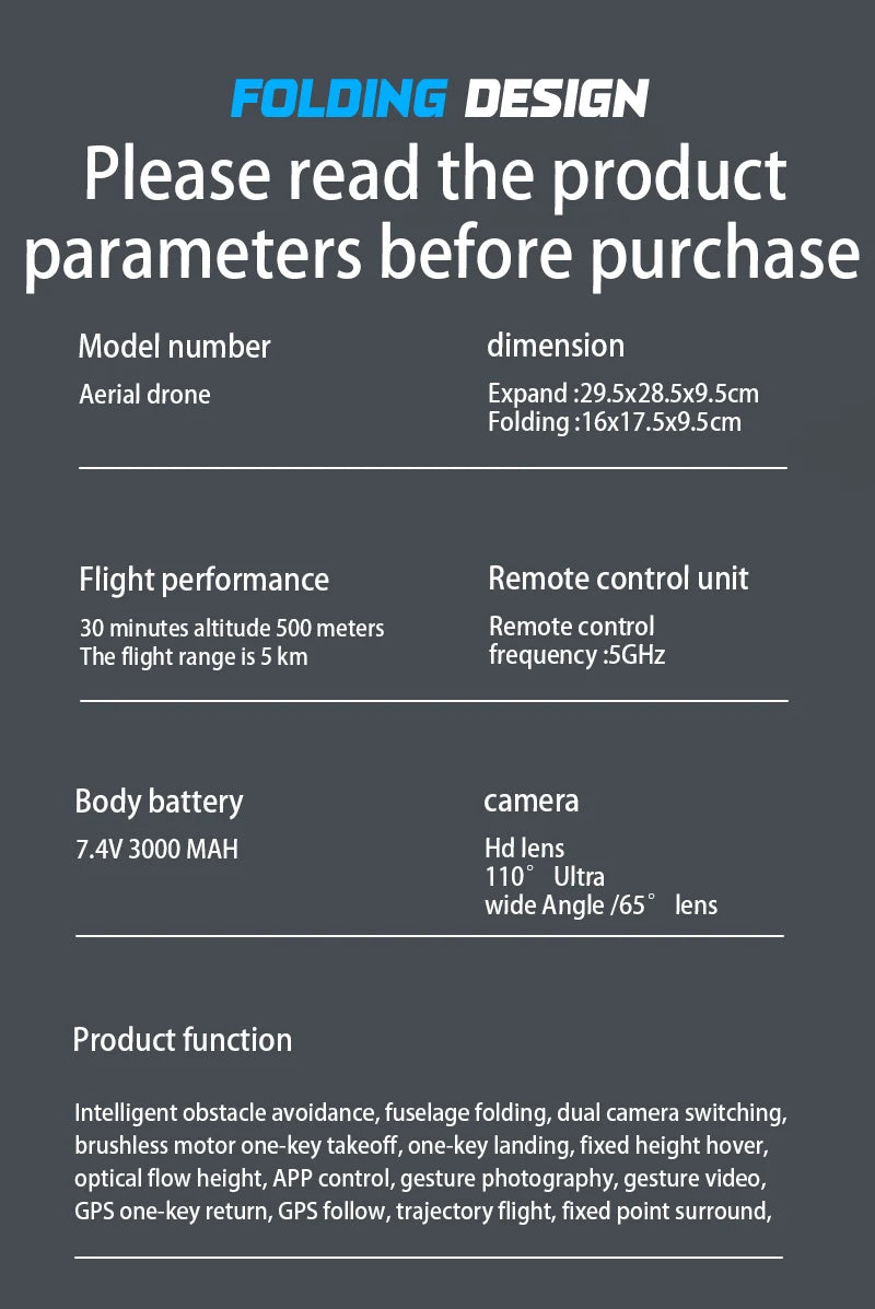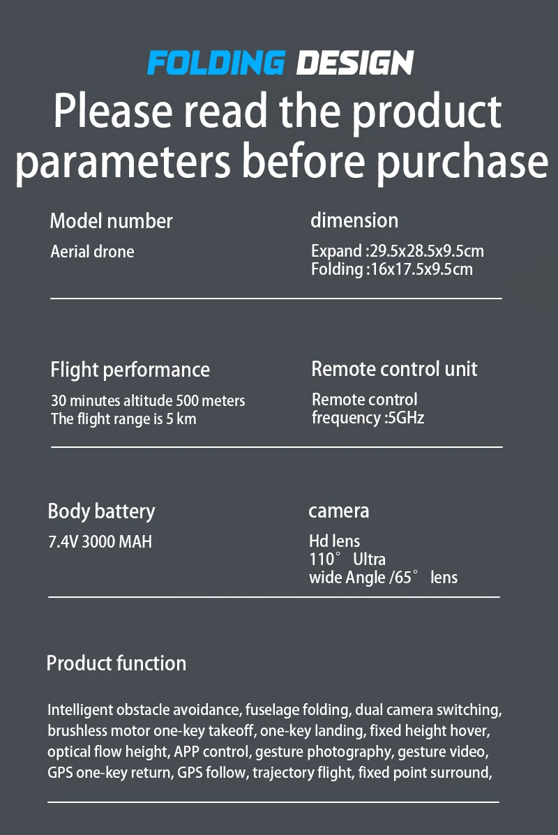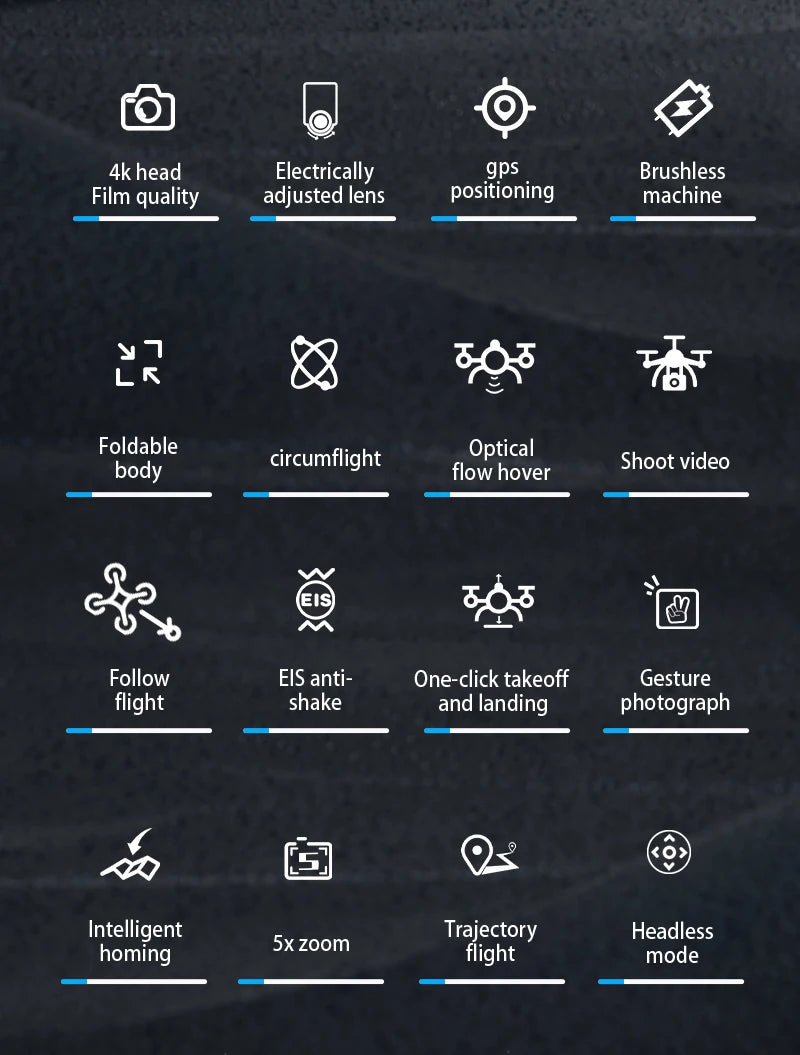 Equipped with screen remote control (rechargeable)/three-axis electrically adjustable gimbal/GPS/optical flow switching/brushless motor/long endurance 7.4V large battery/low battery/loss of control/long-range return/following/flying around/automatic switching of optical flow/GPS, 8K pixels, equipped with adjustable 90 ° camera, out of control return, LCD remote control, low battery return, one button return, about 23 minutes of battery life, 5g HD image transmission, intelligent follow, gesture photo, video, picture 50 times zoom, point of interest surround