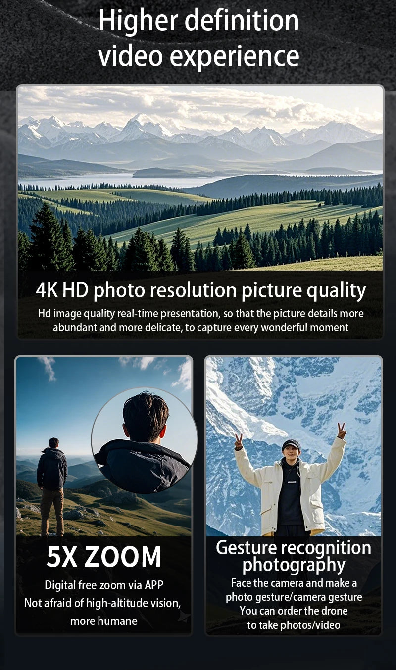 Features: 8K ultra clear, intelligent return, 360 ° laser obstacle avoidance, intelligent following