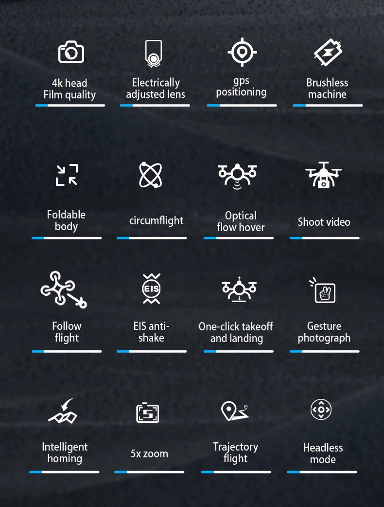 Equipped with screen remote control (rechargeable)/three-axis electrically adjustable gimbal/GPS/optical flow switching/brushless motor/long endurance 7.4V large battery/low battery/loss of control/long-range return/following/flying around/automatic switching of optical flow/GPS