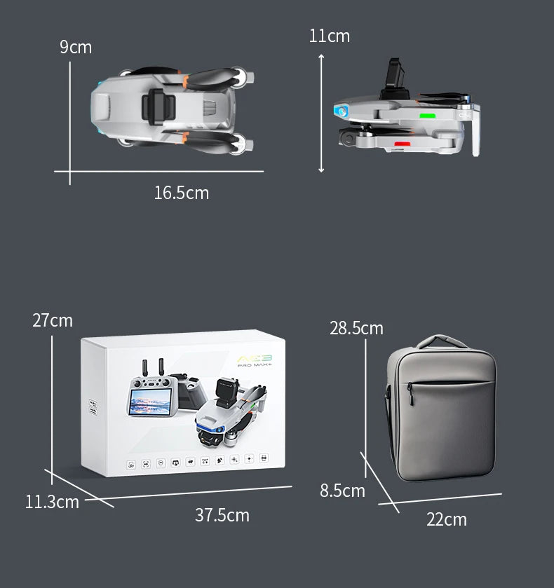 AE3 Pro Max Professional Drone With Screen 360° Obstacle Avoidance Brushless 8K Dual Camera 3-Axis Gimbal Quadcopter FPV dron