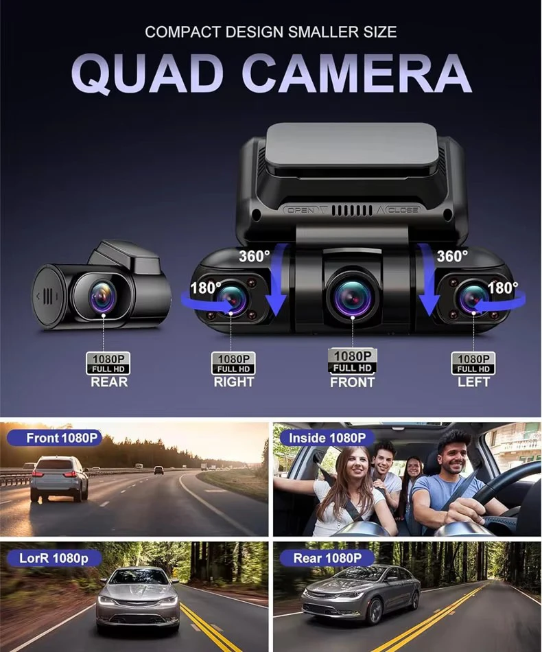 Fearture 1: For Universal Cars Dash Cam. Newest 4 Lens Recorder