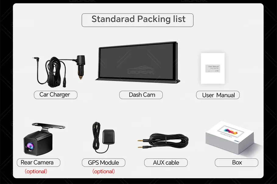 Special Features: G-Sensor,Digital zoom,sd/mmc card,With Rearview Mirror,Anti Surge Voltage Impact,Waterproof,Anti Fog,Anti Vibration,Automatic White Balance,Wide Dynamic Range,wifi function,Bluetooth,Speed and Coordinates Recording,External GPS