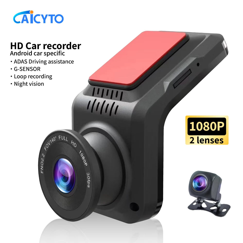 Dash Cam Car USB ADAS DVR HD1080P Special for Android Multimedia Player Dual-lens Front Rear 170 Degree Recorder Reverse Vision