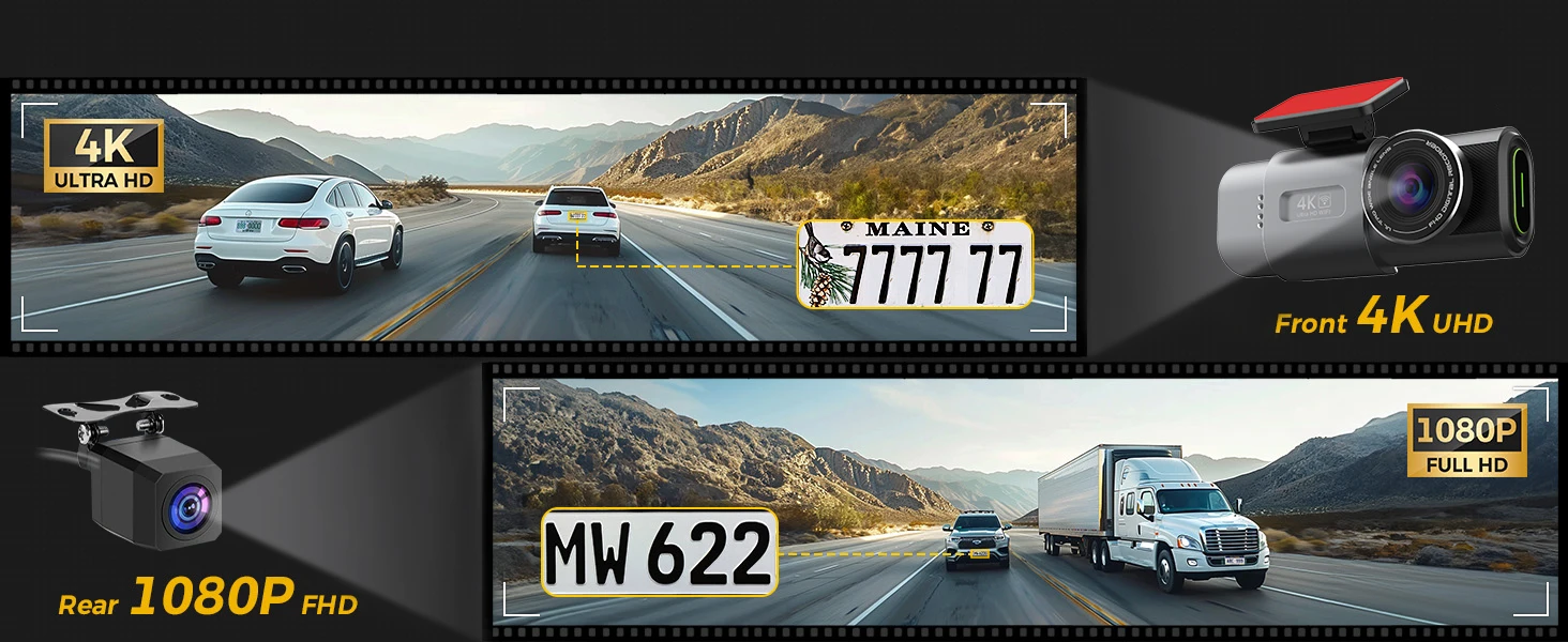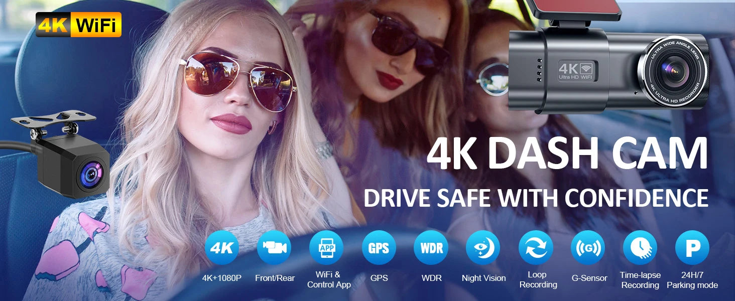 ●Add Features: Night Vision, 3840x2160P front Camera, 4K video resolution, WiFi, GPS tracking