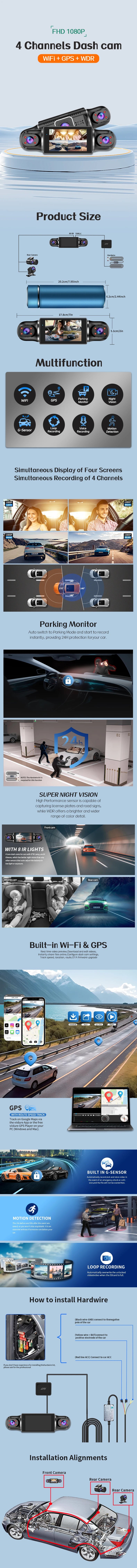 4 Channel Dash Cam: Capture every angle with 4 channels of high-definition recording.