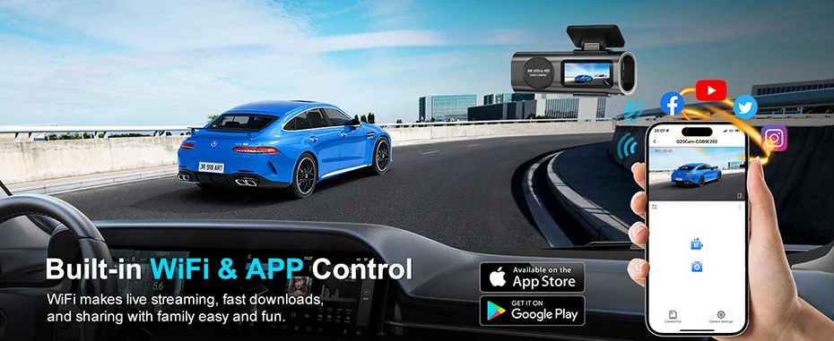 Dash Cam Front and Rear, 4K+1080P WDR Dash Camera for Cars,Built-in WiFi Car Camera with GPS Track,G-Sensor, Super Night Vision