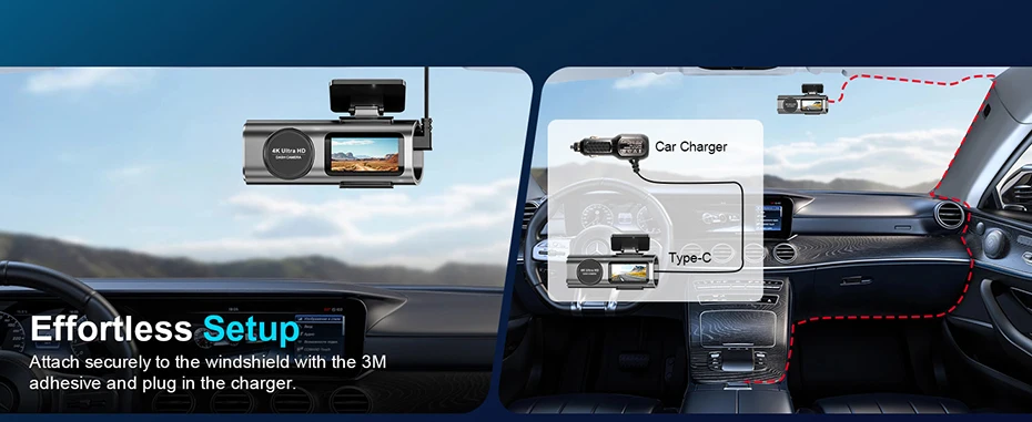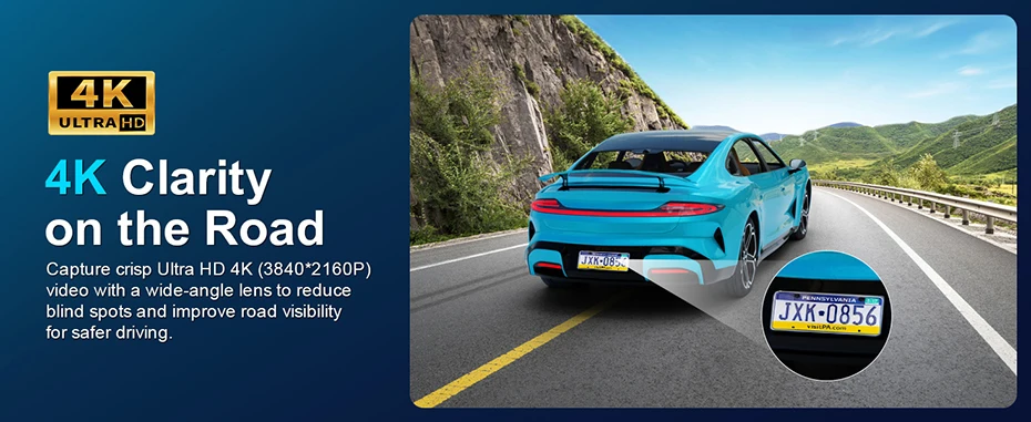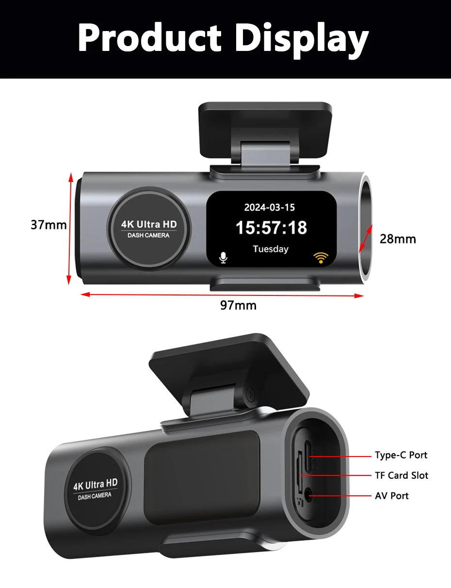 The K04 is equipped with front and rear cameras, which can record at the same time. The front camera supports 4K resolution and can capture road information very clearly.