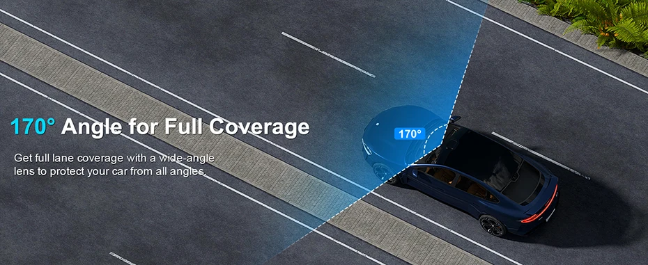 Get full lane coverage with a wide-angle lens to protect your car from all angles.
