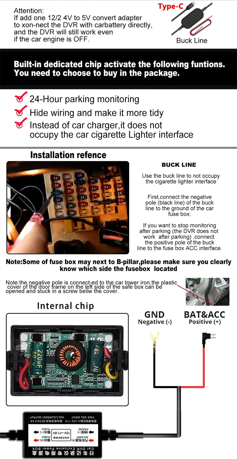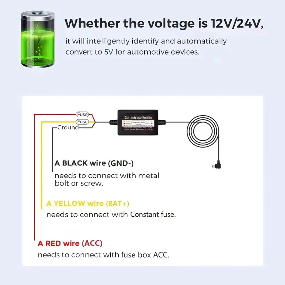 It is better always to connect Dash Cam to external power (Type-C Buck Line),