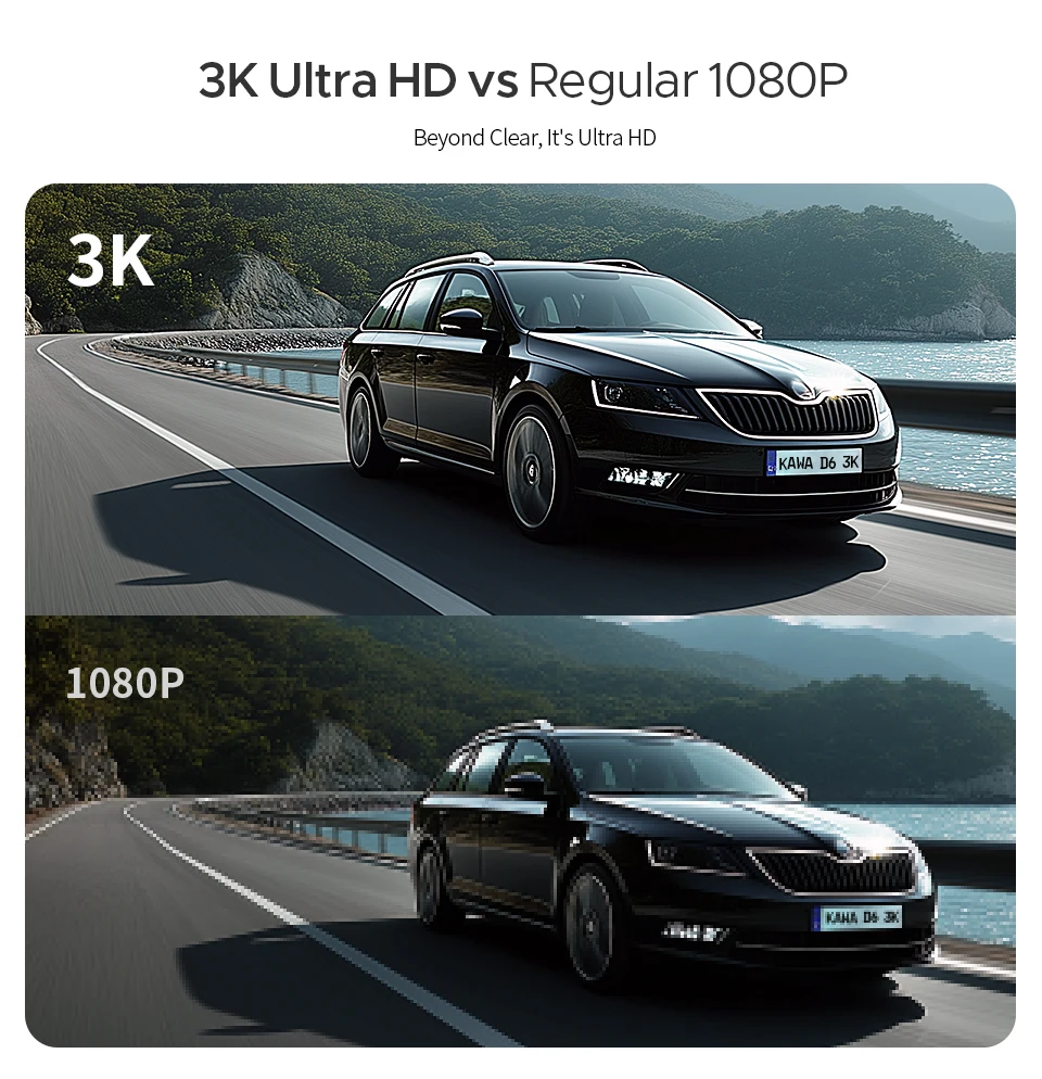 Dash cam KAWA D6 3K Video Recorder Car Dash Camera for AUTO, Car DVR Voice Control,Night Vision Dashcam 2025 New