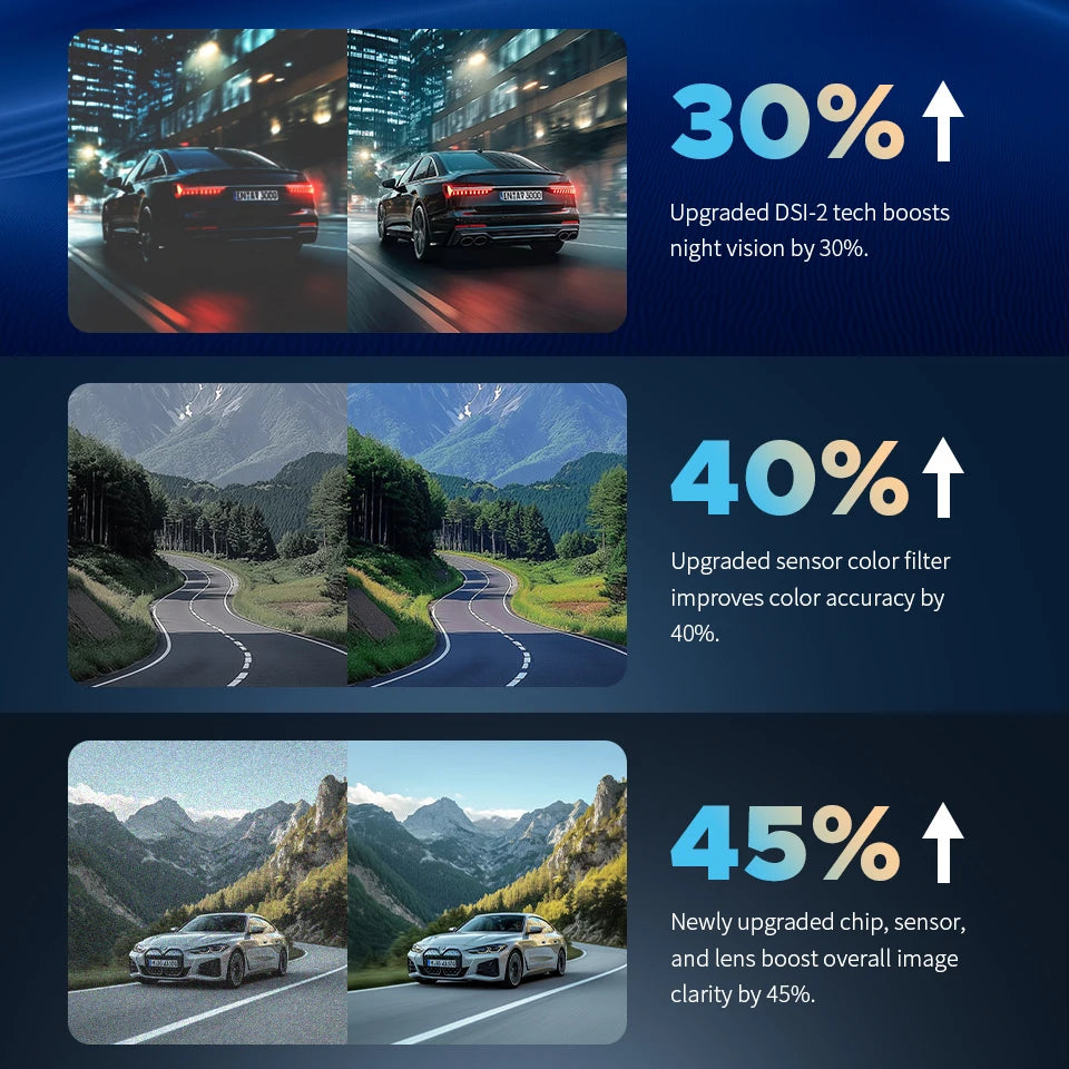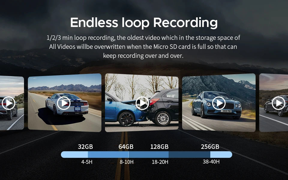 With Wide Dynamic Range (WDR) technology, your dashcam can capture balanced images in both bright sunlight and low-light environments. This feature helps to bring out important details hidden in shadows or highlights, making your videos clearer and more useful for identifying objects or license plates.