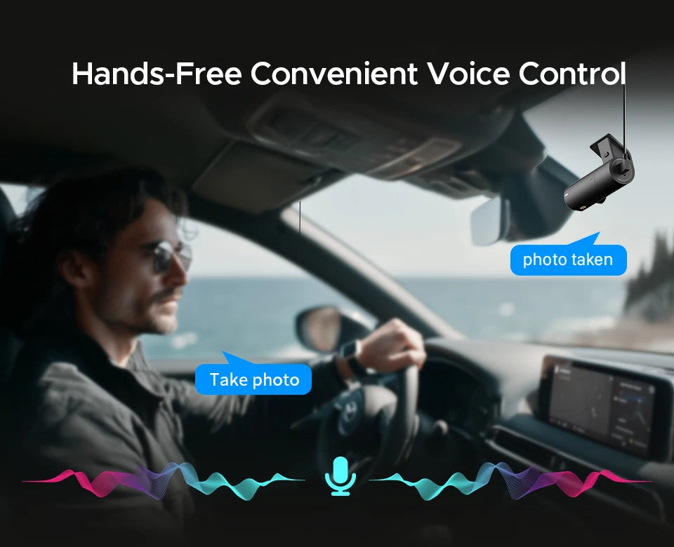 Control your dashcam effortlessly with simple voice commands. No need to take your hands off the wheel or press any buttons. Like, say: take photo--3K D6 will capture real-time footage immediately