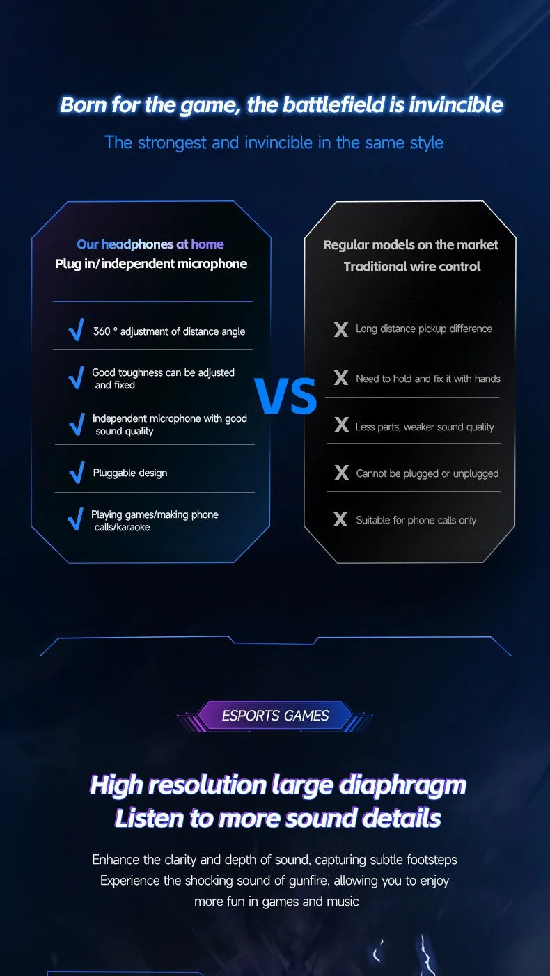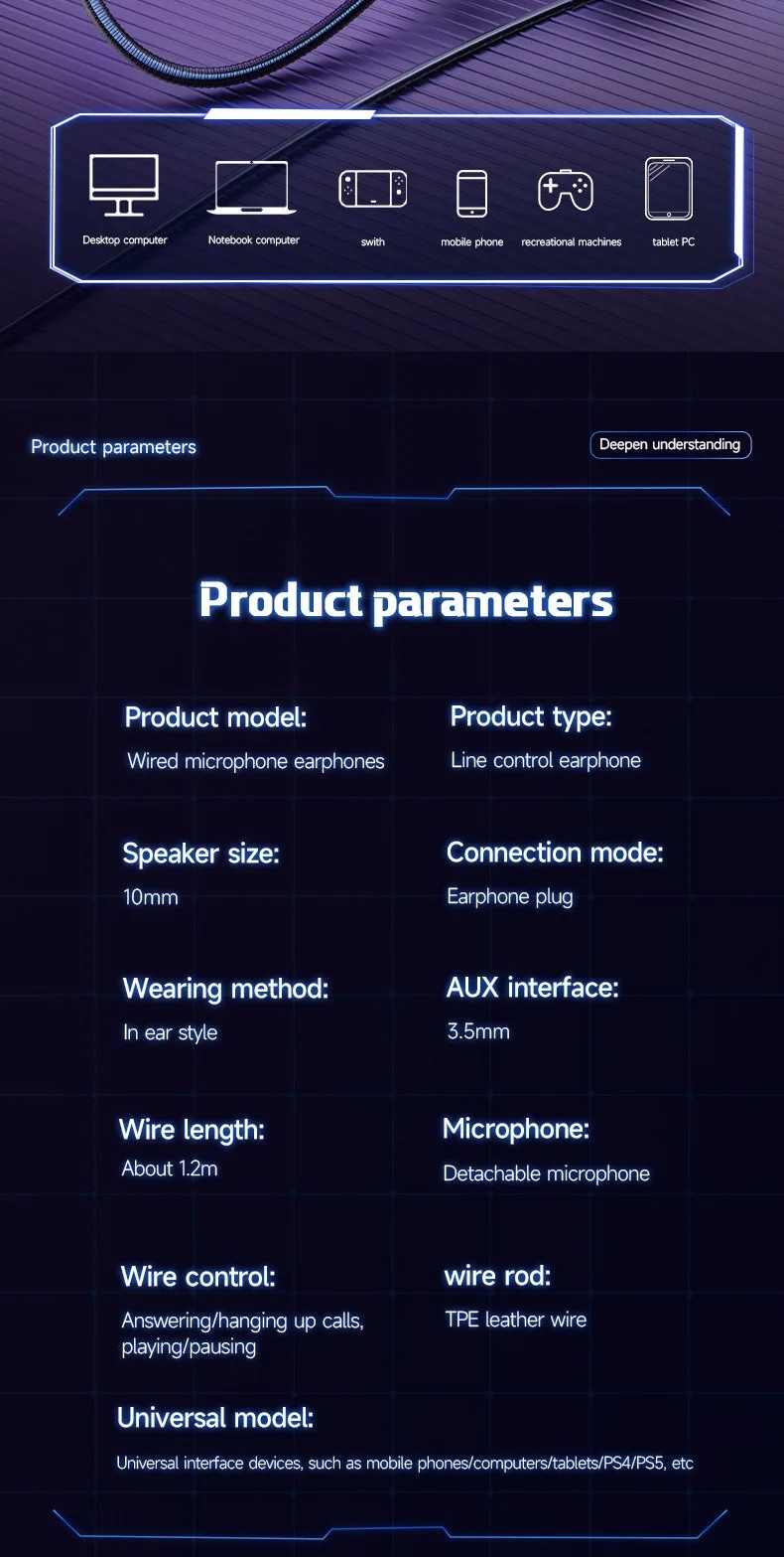 Features3: 3.5mm AUX/ TYPE-C Gaming Low Latency Wired Headphones