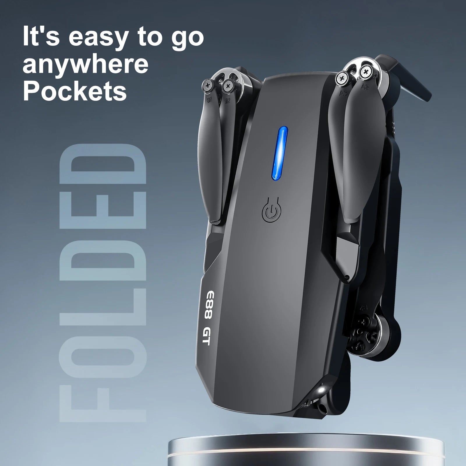 E88 GT Upgraded Version:Remote control with screen, brushless powerful motor, optical flow positioning