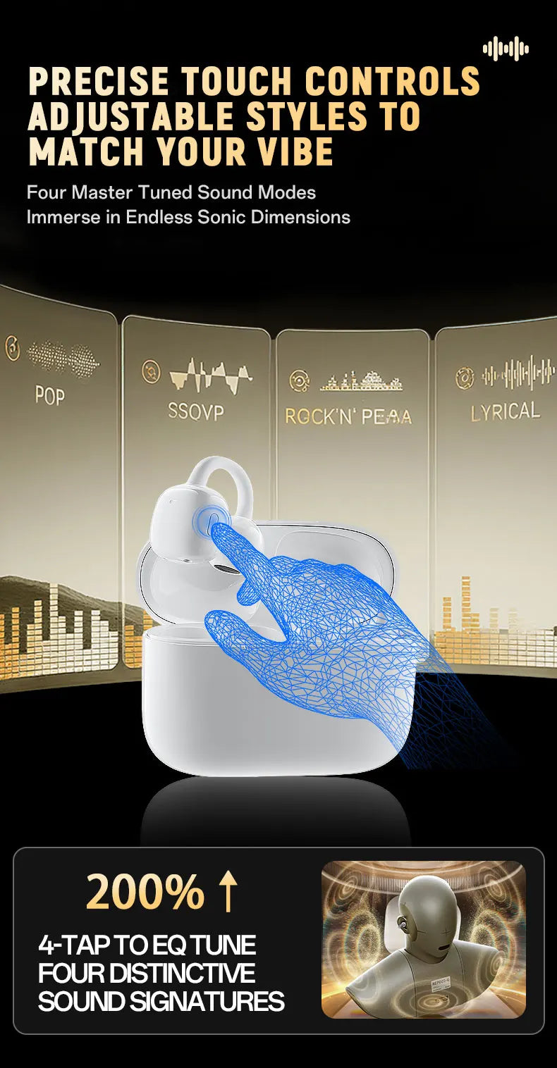 New Gen Ear Clip Sleek Style Earbuds Bluetooth 6.0 Headphones HIFI Sound Earphone Touch Control Wireless Headset Noise Reduction