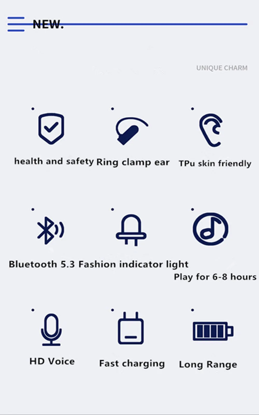 Ear-Clip Wireless Headsets TWS Bass Music Earring Bluetooth 5.3 Earphones Single Sport Headphone With Mic Touch Business Earbud