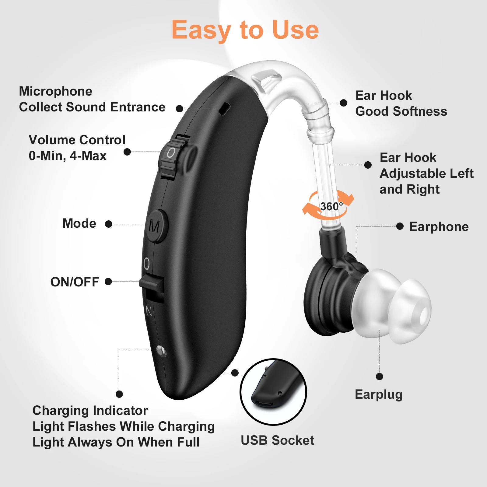 1.It is USB rechargeable hearing assist without frequent battery replacement
